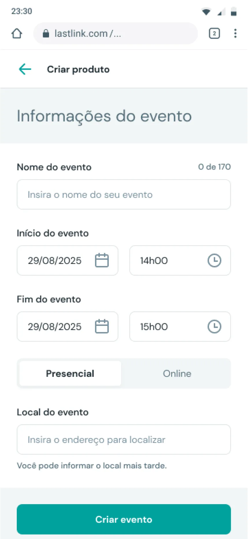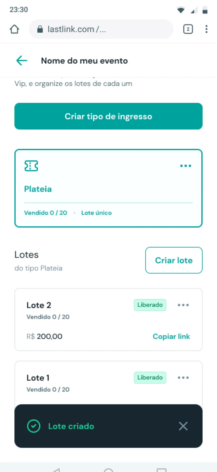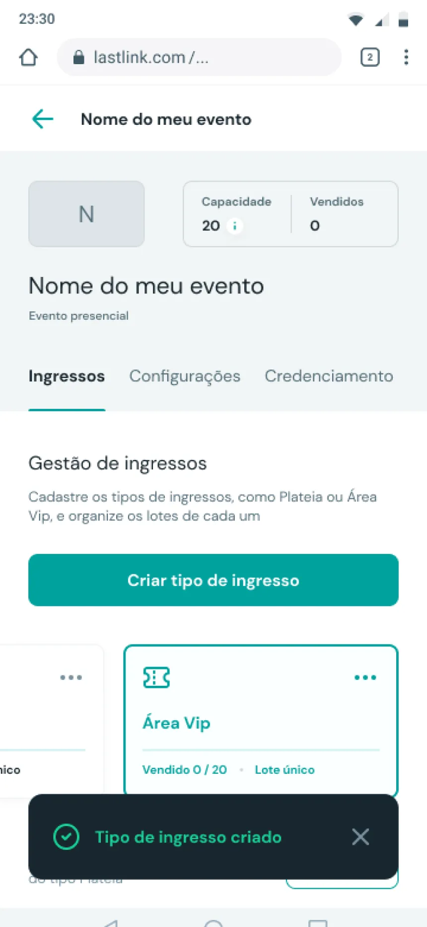 Lance eventos presenciais ou online com checkout rápido, virada automática de lotes e entrega segura de ingressos.